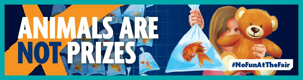 Fairs might bring back fond memories, with jingles, sugary doughnuts, and arcade prizes. But for animals given away as prizes, there is no fun at the fair. Goldfish won at funfairs suffer from severe stress, oxygen deprivation, and sudden changes in water temperature. Many die before they even make it home.